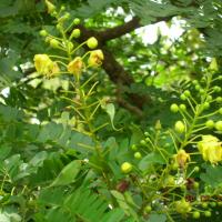 Caesalpinia sappan is a multipurpose tree used primarily as a source of medicine and dye. Wood is used for making cabinets and walking sticks. A red dye called Brazilin is extracted and used for coloring cotton, silk, and woolen fabrics. Pods contain tannin. The wood is useful in inlay work. Wood has astringent property.