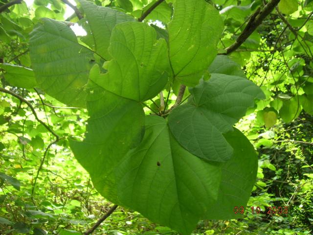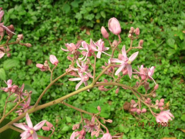 | Botanical Features | Medium-sized trees; branchlets tomentose. Leaves broadly ovate or suborbicular, cordate at base, entire at margin, acuminate at apex, 10-15 x 8-12 cm, glabrous; stipules ensiform. Flowers in large large, terminal panicles, sepals 5, linear-lanceolate, 6-7 mm long, basally connate, pubescent outside. Petals 5, unequal, shorter than sepals, rosy. Capsules pyriform, inflated, membranous, loculicidal, 5-valved; seeds tubercled. |