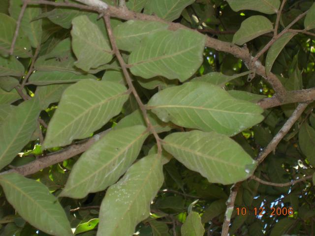 | Botanical Features | Large deciduous trees, bark brownish-black, longitudinally grooved; blaze yellowish; young parts tomentose. Leaves simple, alternate, distichous; petiole 2-6 mm long, slender, pubescent; lamina 8-17 x 2-10 cm, ovate or oblong-ovate; base cuneate to round or subacute; apex acute, margin entire, tomentose above when young, glabrous with age except midrib, tomentose beneath; lateral nerves 8-10 pairs, pinnate, slender, prominent beneath,flowers greenish-yellow, solitary or a few together, fruit aggregate of berries, fruitlets 2.5 cm across, subglobose, tapering to base, succulent, purple, seeds 4-5. |