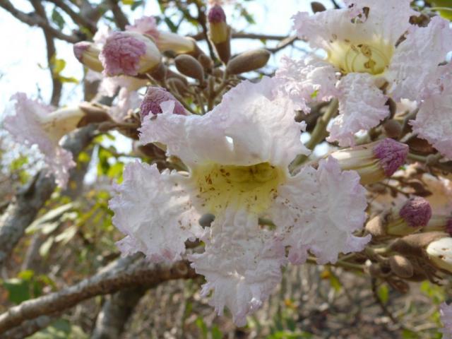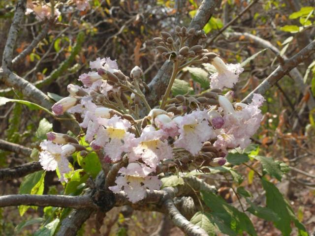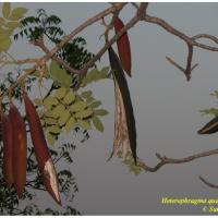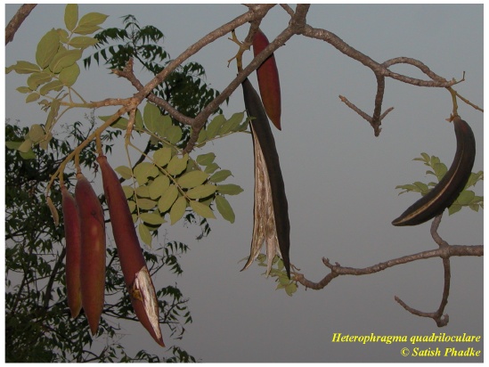 | Botanical Features | Medium sized trees; to 15 m high; bark 1.3 cm thick, brown or grey, exfoliating in small angular scales; bole rough. Leaves compound, imparipinnate, opposite, clustered at apex, estipulate; rachis 14-23 cm, slender, pulvinate, puberulent; leaflets 7-11, opposite or subopposite; lamina 4-5 x 1.8-2.5 cm, elliptic, elliptic-oblong; base acute or oblique; apex obtuse or acute; margin entire or crenate, puberulent, coriaceous; lateral nerves, 4-6 pairs, pinnate. Flowers bisexual, rose coloured, in terminal woolly tomentose panicle; pedicels to 5 mm, stout; calyx to 2 cm, tubular, irregularly 5 lobed, densely tomentose; corolla to 3.5 cm, lobes 5, subequal, rounded; stamens 4; ovary sessile, ovate; ovule many; style to 3 cm; stigma 2 lobed. Fruit a capsule, 25-28 x 5-6.5 cm, oblong, 2 valved, compressed,seeds 2 x 6 cm, membranous, winged at one end. |