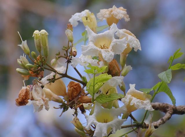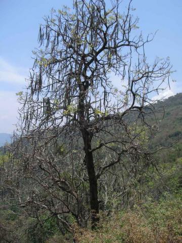 | Botanical Features | Deciduous trees; bark light greyish-brown, rough, corky, flaking off in thin irregular scales; blaze brown and cream. Leaves compound, bipinnate or tripinnate, opposite, estipulate; rachis 24-50 cm long, stout, swollen at base and each nodes; pinnae 7-9, leaflets 3-9 in each pinnae, opposite; petiolule 1.5-5 mm; lamina 3.5-15 x 2-7 cm, elliptic-lanceolate, ovate-lanceolate or ovate; base oblique or acute; apex acute or acuminate; margin entire, membranous, glabrous; lateral nerves 4-7 pairs, glabrous, flowers bisexual, white, tinged with yellow, fragrant, in terminal panicled cymes, fruit a capsule, elongate, 30-75 x 1.5-3.7 cm, warty tubercled, woody, bivalved, dissepiments spongy, slightly curved; seeds winged, 1.5 cm long, with membranous wings at both ends. |