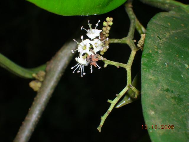 | Botanical Features | Small trees. Leaves alternate, 6-10 x 3-4 cm, elliptic, base cuneate, apex acuminate, thin coriaceous, glabrous, lateral nerves 5-7 pairs; petiole c. 2 cm long. Flowers 2.5-3 mm across, in axillary and terminal unilateral corymbose cymes. Calyx minute, 5-toothed. Corolla white, c. 2.5 mm long, lobes 5, oblong, obtuse. Stamens 5, exserted. Ovary minute, 2-celled; ovules 2 in each cell; style 2-fid above middle. Drupe 4-5 mm across, subglobose, red. Seeds 4. |