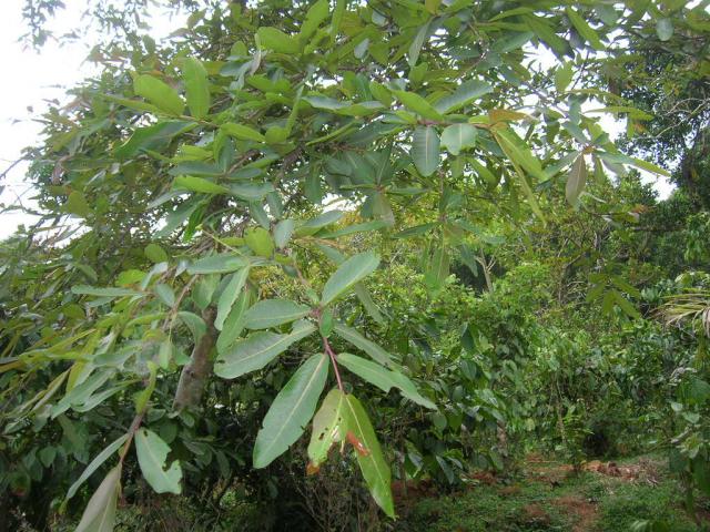 | Botanical Features | Evergreen trees, bole often buttressed; bark surface pinkish-grey, smooth, flaking off in thin layers; blaze pink; exudation red, gummy; branchlets drooping. Leaves simple, opposite to alternate, estipulate; petiole 5-15 mm long, stout, grooved above, glabrous; lamina 7.5-16 x 3.7-8.5 cm, oblong, elliptic, oblong-ovate or oblong-obovate, base round, obtuse or cordate, apex obtuse or round, margin crenulate or entire, glabrous, coriaceous, 2 glands at the base on the lowerside; lateral nerves 10-17 pairs, pinnate, arched towards the margin, flowers bisexual, dull yellow, fruit a drupe, 6 x 3 cm, oblong, 5-7 winged; wings equal, lines on the wings oblique and curving upwards, apex notched; seed one. |