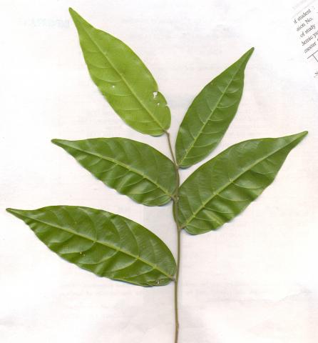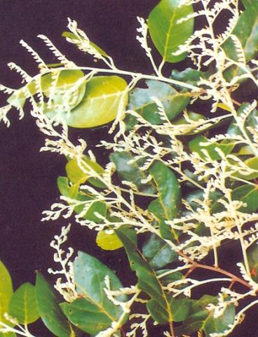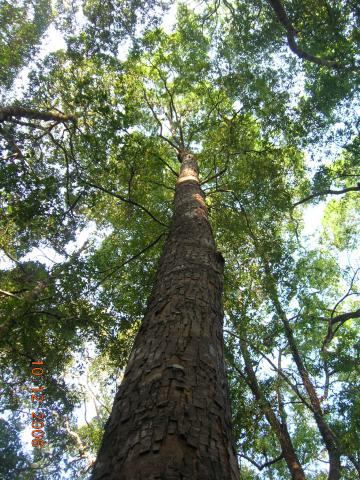 | Botanical Features | Trees, upto 35 m high, bole straight, buttressed, bark 6-10 mm, light brown or grey, mottled with white, rough vertically fissured, fibrous; blaze yellowish; branchlets reddish-brown, slightly pubescent. Leaves simple, alternate; stipules small, lateral, deciduous; petiole 10-12 mm, slender, pubescent when young, glabrous when matured, grooved above; lamina 8-11.5 x 3-5 cm, ovate, lanceolate or ovate-lanceolate, base acute obtuse, cordate or subcordate, apex acute or glabrous, apiculate, coriaceous; lateral nerves 8-12 pairs, pinnate, prominent, intercostae scalariform, faint, domatia present. Flowers bisexual, 3-4 mm across, creamy yellow, in unilateral terminal and upper axillary, tomentose racemose panicles; sepals 5, 3 mm long, tomentose outside; petals 5, 6 mm long, oblong, glabrous, fimbriate at apex; stamens 5, rarely 10, slightly connate; connective of anthers produced into a subulate point; ovary superior, glabrous, ovules 2 in each cell; style short, subulate. Fruit a nut, 5-6 mm long, terete, glabrous; wings 2, 6 x 1.8 cm, 8-10 nerved, glabrous. |