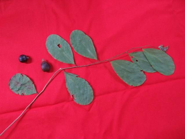 | Botanical Features | Deciduous trees, to 15 m high; bark dark brown, nearly black, rough, flaking off in rounded thick scales, blaze red; branchlets, terete. Leaves simple, alternate, distichous; stipules lateral, 2-3 m long, linear; petiole 3-10 mm long, puberulous to glabrous, slender; lamina 3-11.5 x 1.5-8 cm, elliptic, suborbicular, obovate or acute, apex round, retuse or apiculate, margin entire, glabrous, glaucous beneath, chartaceous; lateral nerves 4-8 pairs, pinnate, slender, prominent, intercostae reticulate, prominent. Flowers unisexual, yellowish-green, in glomerules borne on main leafy branches and short lateral branchlets; the male 3-5 flowered; females upto 3 flowers; bracts 1.5-2 mm long, subulate; male flowers: pedicels 1-2 mm long, puberulous, calyx tube shortly obconic, lobes 5, occasionally 6, 3-4 x 1-2 mm, triangular-oblong or lanceolate-oblong, adpressed fulvous pilose outside; petals 5, linear; disc annular, shallowly lobed, glabrous; staminal column ca.1.5 mm; anthers oblong; pistillode ovoid; female flowers: pedicel 0.5 mm long, grey-pilose; calyx tube obconic, ca.1 mm long; sepals 4-5 x 1-3 mm, triangular-lanceolate, scattered grey-pilose outside; petals ca. 2 x 1 mm, subulate; disc shortly cupular-annular; ovary superior, 2-2.5 x 2-3 mm, subglobose, glabrous; styles 3-4 mm long, almost free or basal column ca.1.5 mm long, shortly to deeply bifid above, recurved. Fruit a capsule, 18-22 x 17-22 mm, subglobose or wide oblong, truncate at apex, shallowly 3 lobed and 3-angled, glossy, glabrous, black or dark brown when dry; seeds 3, globose, black; pedicels 0.5-1.5 mm long. |