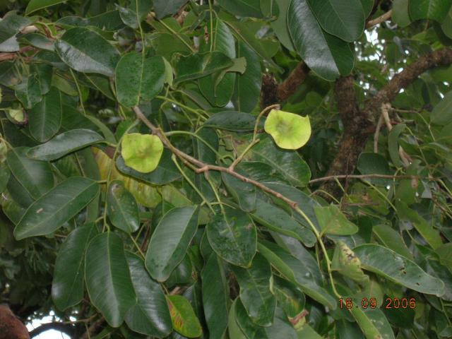 | Botanical Features | Deciduous trees, bark surface grey or greyish-black, rough, deeply vertically cracked, exfoliations small, irregular, fibrous; blaze pink; exudation blood-red. Leaves imparipinnate, alternate; stipules small, lateral, cauducous; rachis 6.5-11.1 cm long, slender, pulvinate, glabrous; leaflets 5-7, alternate, estipulate; petiolule 6-10 mm, slender, glabrous; lamina 3.5-12.5 x 2-7 cm, elliptic-oblong, oblong-ovate or oblong, base obtuse or acute, apex obtuse and emarginate, margin entire, glabrous, coriaceous; lateral nerves 9-20 pairs, parallel, prominent, ascending, secondary laterals prominent; intercostae reticulate, prominent, flowers yellow, in terminal and axillary panicles; fruit a pod, 2.5-5 cm across, orbicular-reniform, broadly winged; seed one. |
