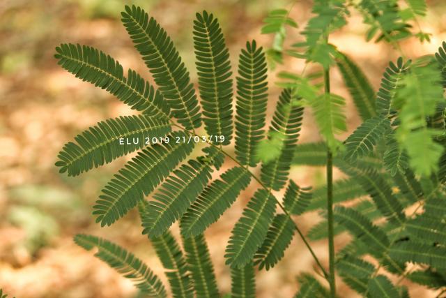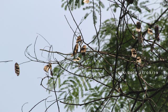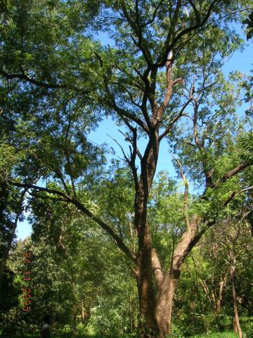 | Botanical Features | Deciduous trees; bark 10-15 mm thick, surface greyish-brown to dark brown, rough, irregularly cracked; blaze reddish-pink; branchlets blackish to brown, terete, 2-6 mm thick, initially tawny pubescent, finally glabrous. Leaves bipinnate, alternate, stipulate; stipule free, lateral, caducous; rachis 20-30 cm long, stout, grooved above, spulvinate, brown pubescent, with a gland at the base, pinnae 2-8 pairs, opposite, even pinnate, 5-13 cm long, slender, puberulent, glands between the junctions of 1-2 distal pairs of pinnae; leaflets 14-40, opposite, even pinnate, estipellate, sessile; lamina 1.8-2.5 x 0.5-1.2 cm, oblong, base oblique, apex obtuse and apiculate, margin entire, glabrous, coriaceous; midrib subcentral to submarginal, lateral nerves 3-6 pairs, pinnate, flowers bisexual, white, in globose heads forming terminal panicles; fruit a pod 15-20 x 2.5-3.7 cm, flat, strap-shaped, with parallel margin or often some portion constricted, glabrous, often glossy, reddish-brown to dark brown, finely reticulately veined; seeds 6-12, oblong, compressed. |