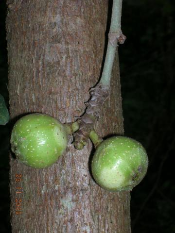| Botanical Features | Trees, to 10 m high laxly branched; bark grey, smooth; blaze yellow; exudation milky; young shoots hispid; internodes of branchlets hollow. Leaves simple, opposite; stipules 11-15 mm long, interpetiolar, ovate-lanceolate, often in whorls of 4 on the receptacles with leafless branches; petiole 1-4 cm long, stout, hispid, with a subnodal gland; lamina 7-20 x 6-10 cm, oblong, obovate, elliptic-oblong, ovate-oblong or obovate-oblong, base round, subcordate or cuneate, apex abruptly acute or acuminate or cuspidate, margin subentire to minutely dentate, membranous, scabrid, hispid-pubescent; 3-5-ribbed from base, lateral nerves 5-6 pairs, pinnate, prominent, intercostae scalariform, prominent. Flowers unisexual; inflorescence a syconia, dioecious, fascicled on trunk or on elongated pendulous or trailing leafless branches, depressed-globose, base narrowed; male flowers and gall flowers in same receptacle; female flowers in separate; male flowers ostiolar, in 2 rings; tepals 3 broad; stamen 1, subsessile; anther oblong, parallel, unequal; female flowers sessile or stalked; perianth short, tubular to 2 mm, glabrous; ovary superior, red-brown; style 1.5 mm long, hairy; stigma clavate; gall flowers same as female but larger and distinctly stalked. Syconium 2-2.5 cm across, yellow; achenes 1.5 mm, lenticular, keeled with prominent hilum |