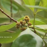 | Botanical Features | Evergreen trees; to 25 m; bark 10-12 mm thick, dark grey, corky, furrowed, prominently pustular-lenticellate; blaze pink, petiole 6-10 mm stout, glabrous; lamina 4-11 x 2-7 cm, obovate, or obovate-oblong, base attenuate or acute, apex acute or obtuse, margin entire, recurved, coriaceous, glabrous and glossy; lateral nerves 6-10 pairs, slender, pinnate, obscure, secondary laterals present; intercostae reticulate, obscure. Flowers bisexual, cream coloured, sessile, small, in short, trichotomous axillary branching cymes; bracteoles minute, calyx tube campanulate, lobes 5-8, ovate, acute, valvate; petals 5-8, clawed, orbicular-cordate, margin deeply lacerate, reddish, inserted on a crenulate disc; disc 10-16 lobed; stamens 10-16, inserted with them on the disc, one of each pair opposite the petal, slightly longer than the other filament, which is opposite to a sepal; filaments filiform; anthers small; ovary half inferior, 3-5-celled; ovules 2 in each cell; style subulate; stigma 4-lobed. Fruit a drupe, 5-6 mm across, red, filiform; seed one, bright orange, subreniform. |