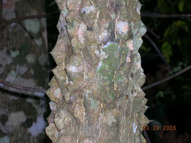 | Botanical Features | Deciduous trees, bark brown, mottled with white, armed with conical prickles; outer bark dead, corky, pale yellow, inner bark sulphur yellow; branchlets woody, terete, sparsely prickly. Leaves imparipinnate, alternate, clustered at the tips of branchlets, estipulate; rachis 30-45 cm long slightly grooved above when young, becoming cylindric on maturity, usually prickly, glabrous; leaflets 13-23, opposite or subopposite, estipulate; petiolule 1-5 mm long; lamina 6-19 x 3-6.5 cm, oblong, elliptic-oblong, oblong-ovate, base oblique, apex acuminate or caudate-acuminate, margin entire or crenate, glabrous, punctate, coriaceous; lateral nerves 6-12 pairs, flowers greenish-yellow, in terminal cymose panicles, fruit a capsule, of 1-4 cocci, purplish, tubercled, aromatic; seeds globose, smooth, blue-black. |