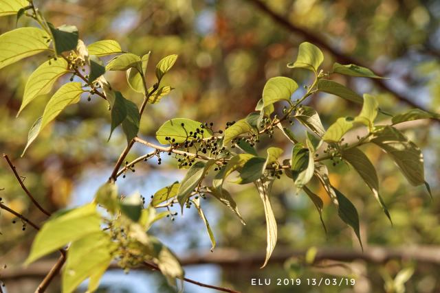 | Botanical Features | Dioecious trees, bark greyish or bluish-green, rough, lenticellate; blaze creamy-yellow, streaked; branchlets scabrous to adpressed pubescent. Leaves simple, alternate; stipules lateral, cauducous; petiole 5-10 mm, slender, tomentose, grooved above; lamina 7.5-15 x 2.5-6 cm, ovate-lanceolate, ovate or oblong-lanceolate, base obliquely cordate, apex acuminate, margin serrulate, 3-5-ribbed from base, prominent, lateral nerves 3-4 pairs, pinnate, prominent, flowers unisexual, greenish, fruit a drupe, globose, black; seed globose. |