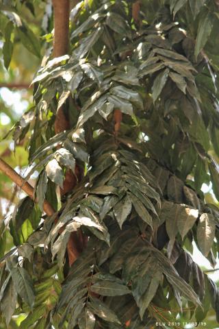 | Botanical Features | Trees, to 25 m high; bark greyish-brown, smooth, blaze dull yellow. Leaves imparipinnate, alternate, stipulate; rachis 35-55 cm long, stout, pulvinate, glabrous; leaflets 9-19, subopposite; petiolule 3-5 mm long, stout, grooved above, glabrous; lamina12-15 × 3-5 cm, elliptic, oblong, elliptic-lanceolate or ovate-lanceolate, base obliquely acute, apex acuminate, margin entire, glabrous, coriaceous; lateral nerves 7-10 pairs, pinnate, slender, prominent, intercostae reticulate, faint. Flowers bisexual, orange, in 12 cm long, racemes which may be axillary or from the old wood; peduncle to 2.5 cm long; calyx 2 cm, turbinate, broadly 5-lobed; petals 5; standard obovate-orbicular, clawed; wings and keels oblong, to 2 cm; stamens 5, free; ovary inferior, stalked, glabrous, ovules few. Fruit a pod, to 12 x 1 cm, turgid, woody, terete, 2-valved; seeds subglobose, 3 cm wide. |